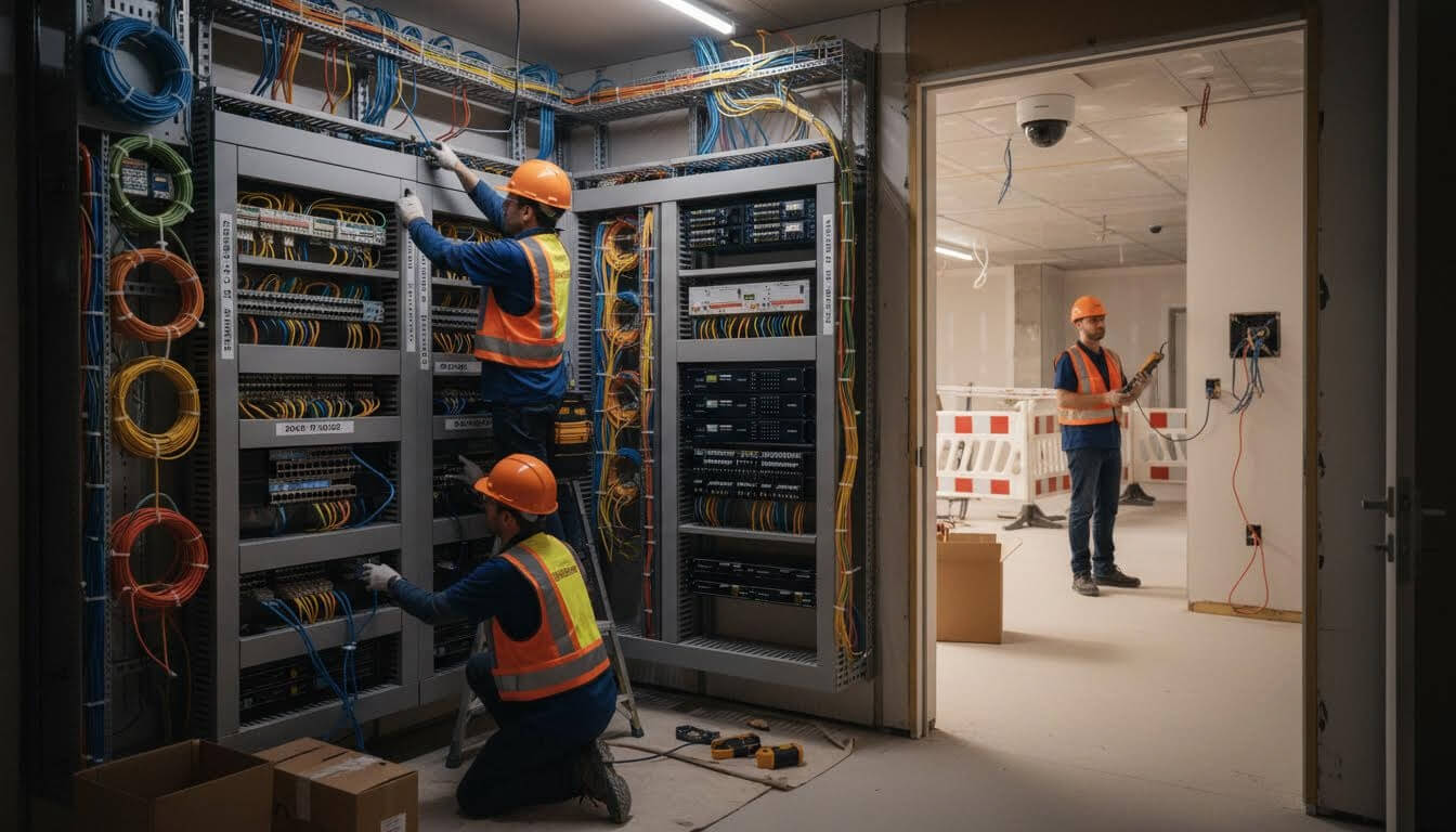 Kurulum sürecinde veri kablolama, network switch ve router kurulumu, erişim noktaları, kablosuz ağ altyapısı, IP kamera ve telefon sistemleri entegre edilir. Sistemler, yüksek performans ve güvenilirlik için test edilir ve optimize edilir.